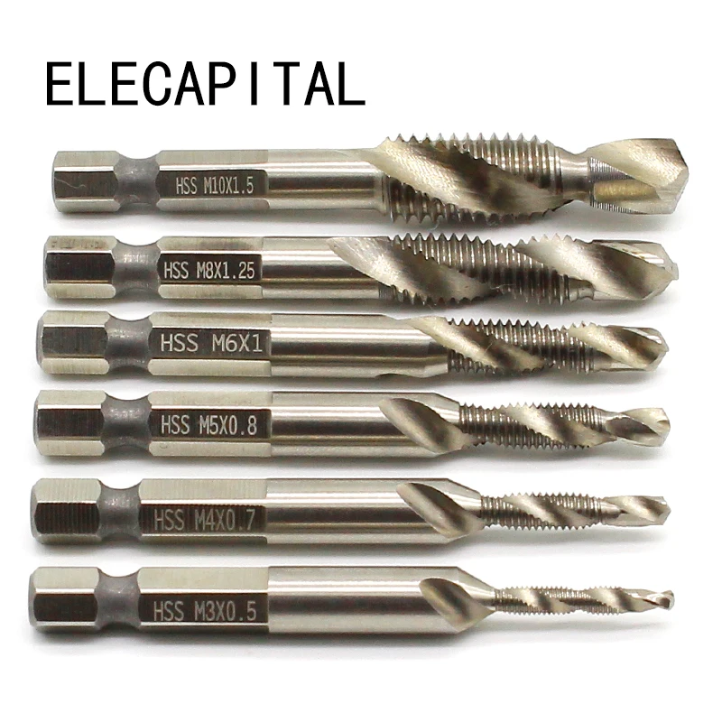 1/4 ‘ Hex Hss Nagysebességű Acélszál Spirál Csavar M3 M4 M5 M6 M8 M10 Metrikus Kompozit Tap Drill Bit 6Db/Set