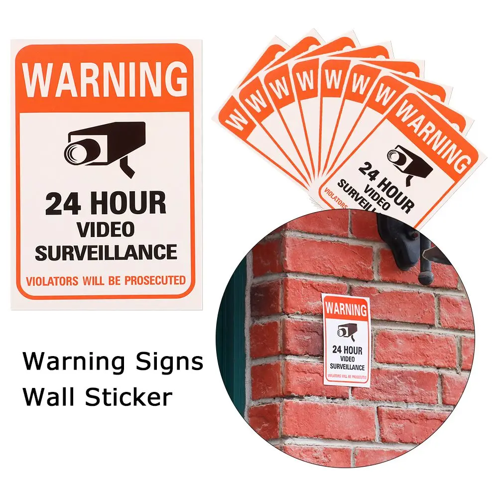 10 Lapok Hasznos Nyilvános Terület Riasztási Címke Szembetűnő Video -Megfigyelő Matrica Figyelmeztető Táblák 24H Kamera Biztonsági Kellékek