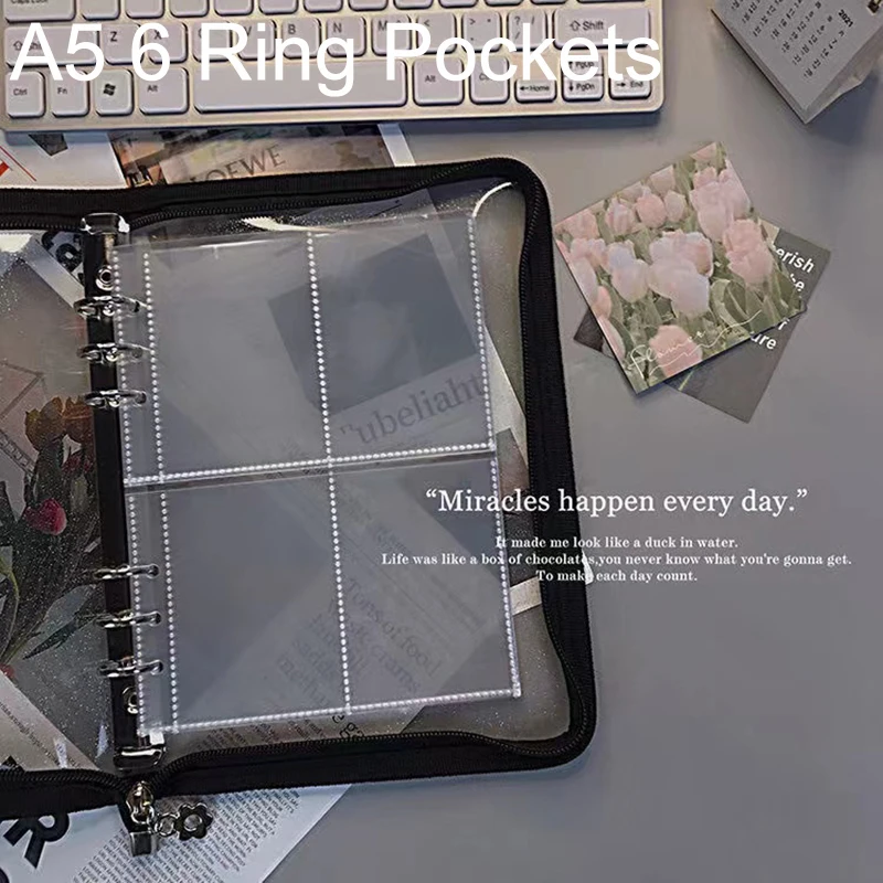 10 Lap A5 6 Gyűrűs Fotokardok Törlő Kötőanyag Oldalak 4 2 Zsebek Kpop Fotó Polaroid Kártyák Képeslap Album Műanyag Védő Hüvelyek