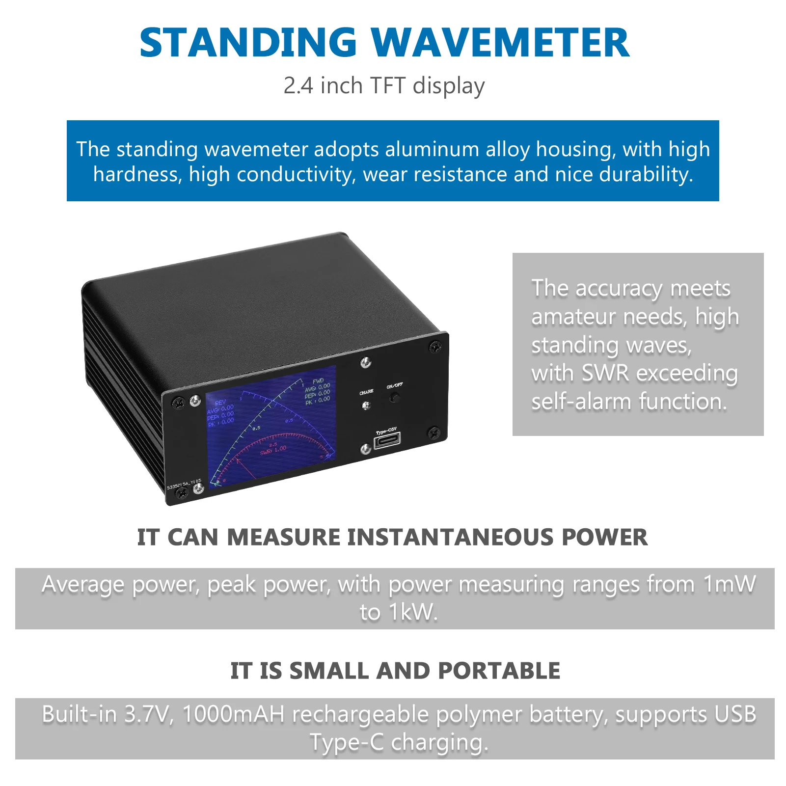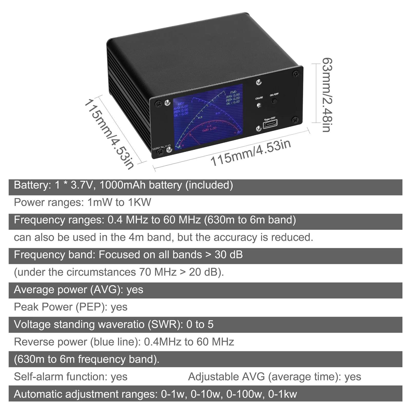 0,4Mhz-60Mhz 0,1Mw-1Kw Álló Hullámhullámú 2,4 Hüvelykes Tft Kijelző Swr Pwr Rövid Hullámok Meters Power Watt Meter Aluminium Ötvözet Ház