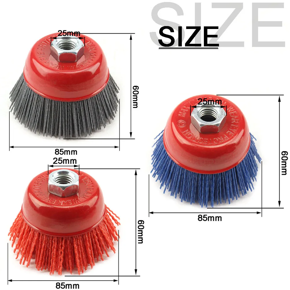 1-3 Db 85 Mm-Es Csésze Nylon Csiszoló Kefe Kerék M14 Halom Polimer-Abrasive Grit 80/120/240 Angling Grinder Tool Szerszám