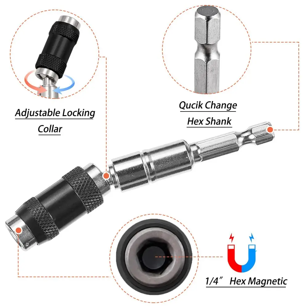 1/4 “Hex Szárú Mágneses Forgó Csavarfúró Hegy 88/145 Mm Gyorsváltás Reteszelő Bit Tartó Famegmunkáló Kézi Szerszám Hosszabbító Rúd