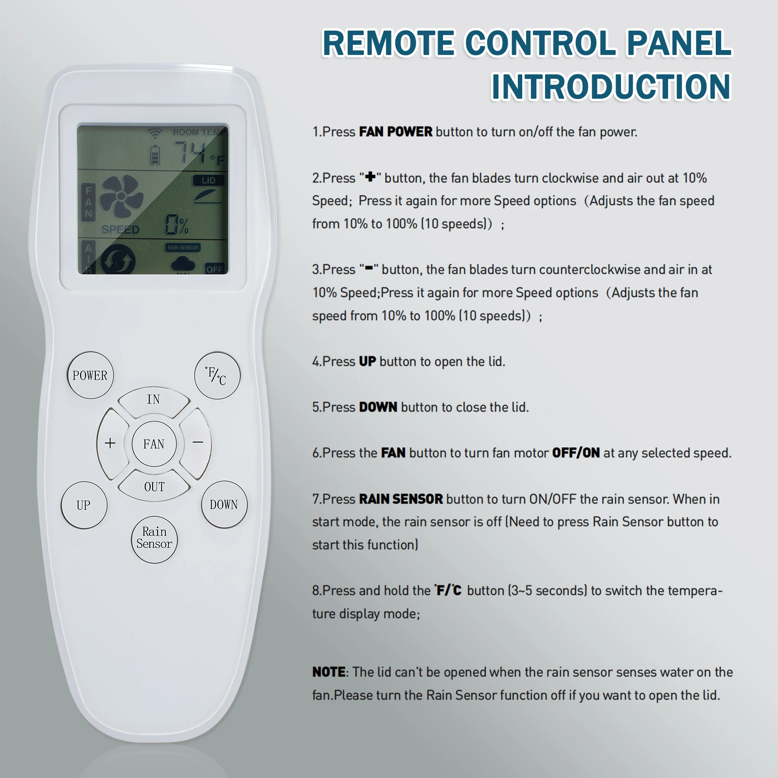 10/3 Speed Rv Ventilátor Esőérzékelő Távirányító Lakókocsi Lakóautó Tetőablakos Szellőzőnyílások 12 V Jármű Elektromos