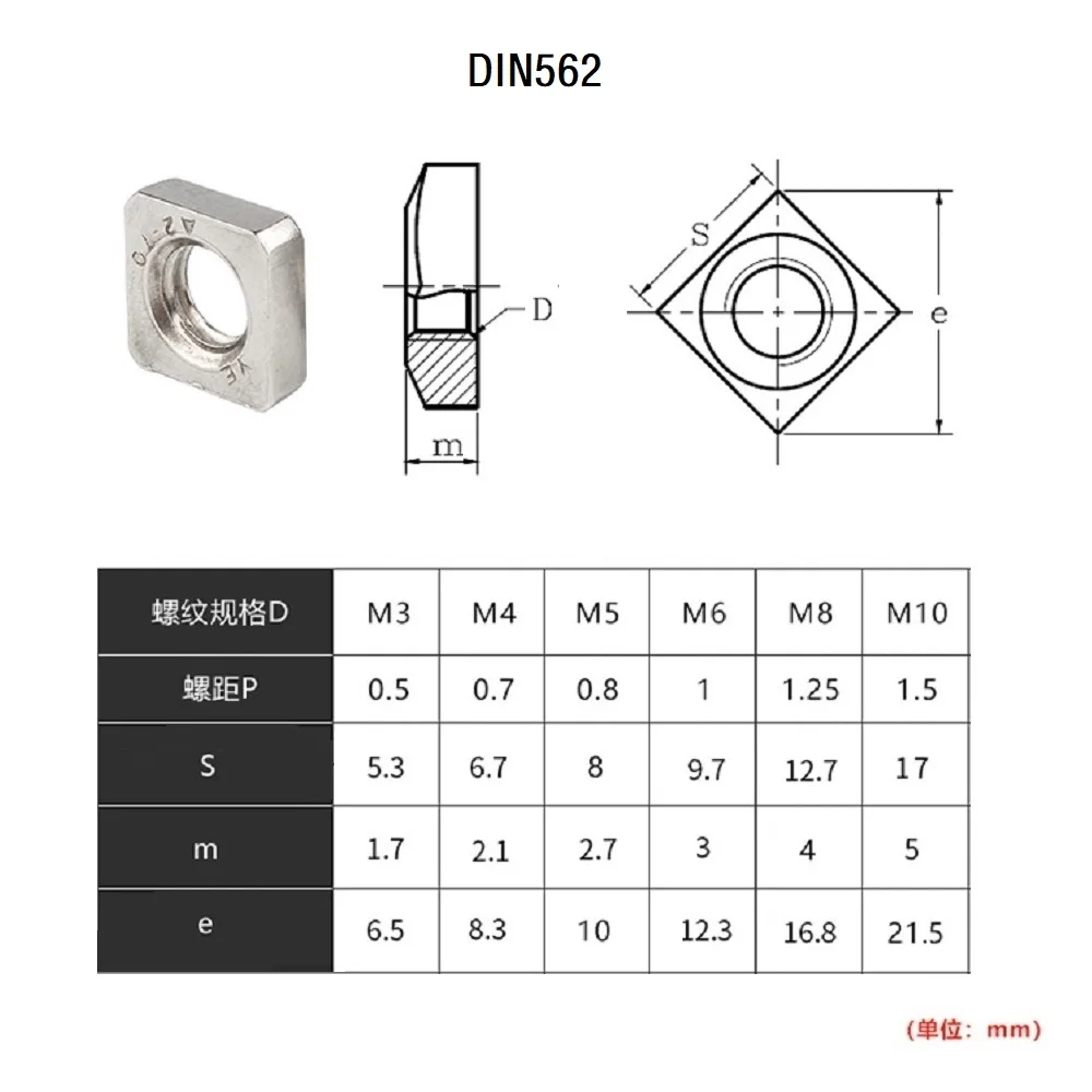 10-50 Százalék Din562 Vékony Anya M3 M4 M5 M6 M8 A2 Rozsdamentes Acél Négyzet Alakú Anyák