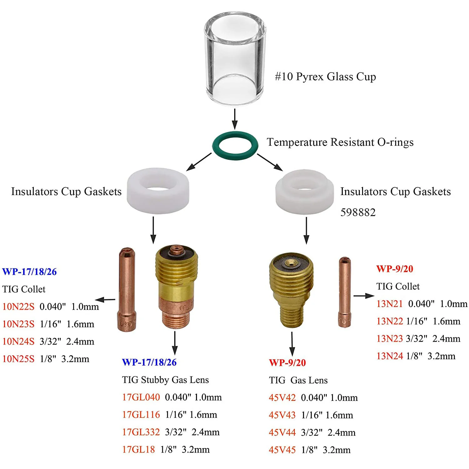 #10 Pyrex Üvegpohara És Hőmérséklet-Ellenálló O-Gyűrű A Wp-17/18/26 Wp- 9/20 Tig Hegesztő Fáklya 15Pcs