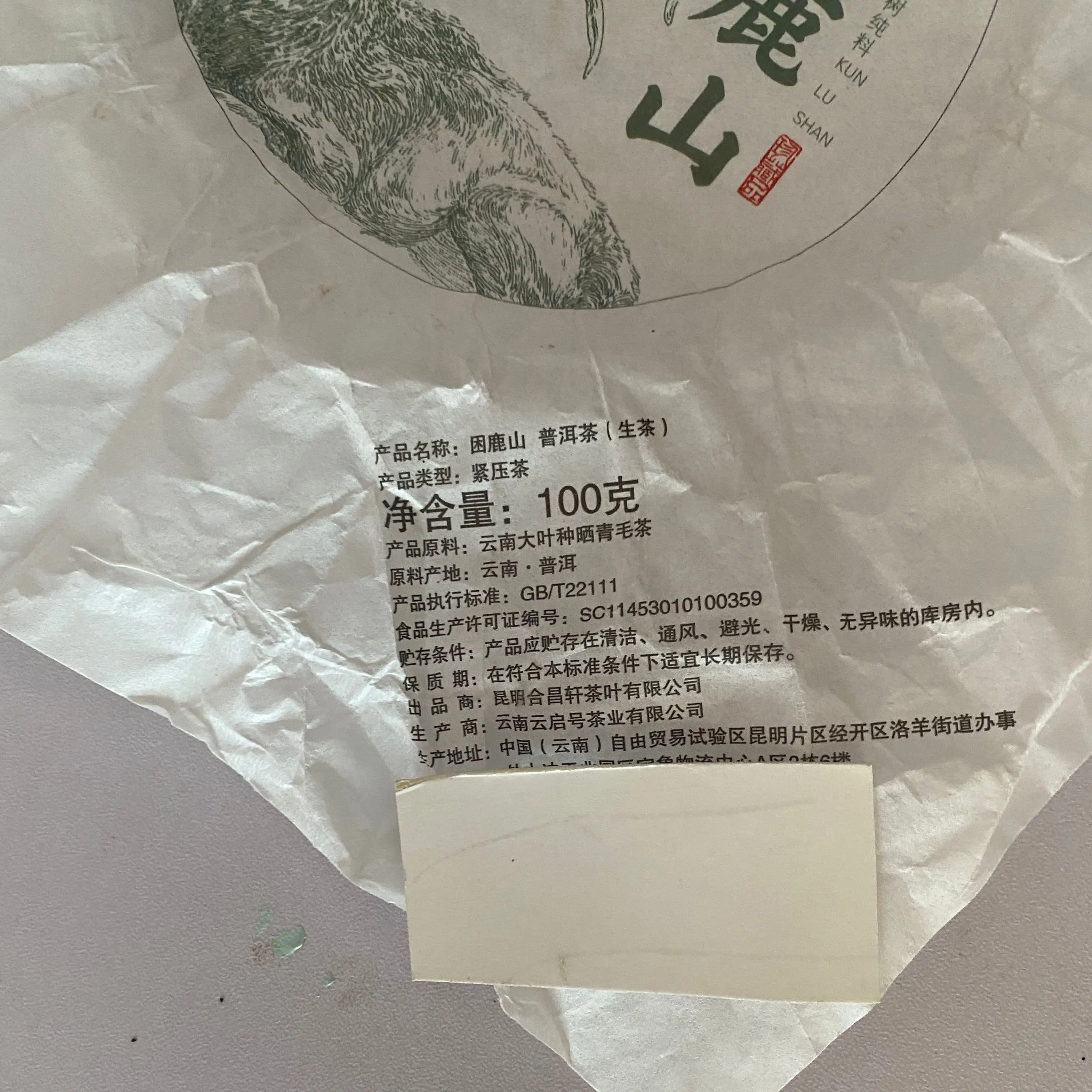 100 G Nyers Pu Er Tea Pamut Papír Újrahasznosítható A+ Yunnan Zöld Csomagolópapír Shen Puer Erh Puerh Szöveti