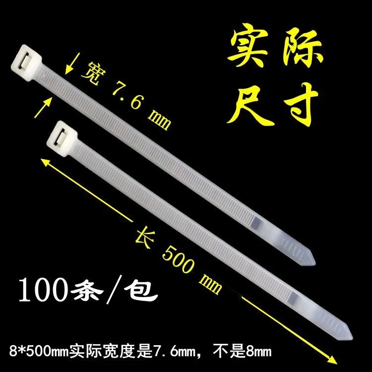 100Db/Csomag 8*500 Mm-Es Többcélú Önzáró Kábelköteg Nylon Cipzáras Huzalkötegek Nagy Teherbírású Erős És Tartós