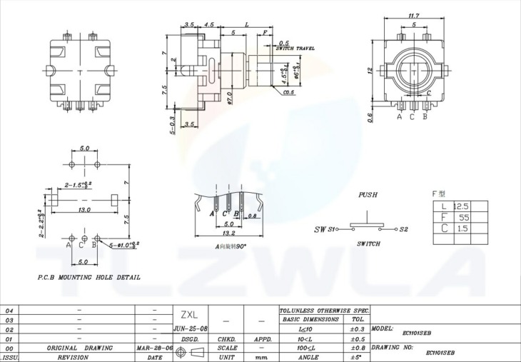 100Db Ec11 Rotary Encoder Kódkapcsoló 20 Pozíció Kapcsolóval 5Pin Fogantyú Hossza 12,5 Mm Fél Tengelytípus