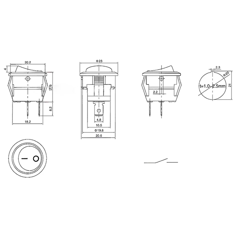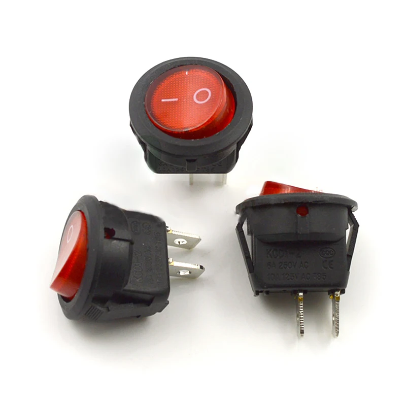 100Db -Os Kerek Rocker Kapcsoló 2 Tűs Csónakos Láb Átmérőjű 23 Mm -Es Lyuk 20 Fekete Piros 6A 250 Vic