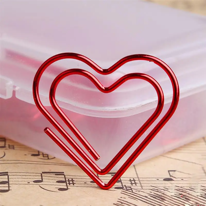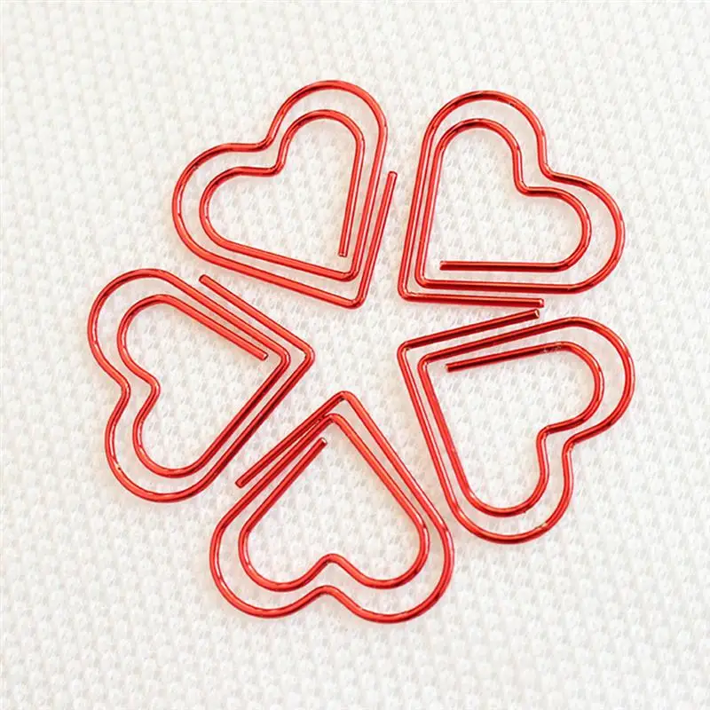 100Db Paperclip Love Heart Paper Clips Bookmark Pin Sleveles Office Kiegészítők (Piros)