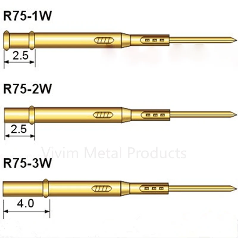 100Db/Tétel R75-2W Sárgaréz Lapos Csap Pcb-Teszthez Tavaszi Teszt Szonda Csapok Receptákok 1,32 Mm Hosszú 24,5 Rugó Nélkül