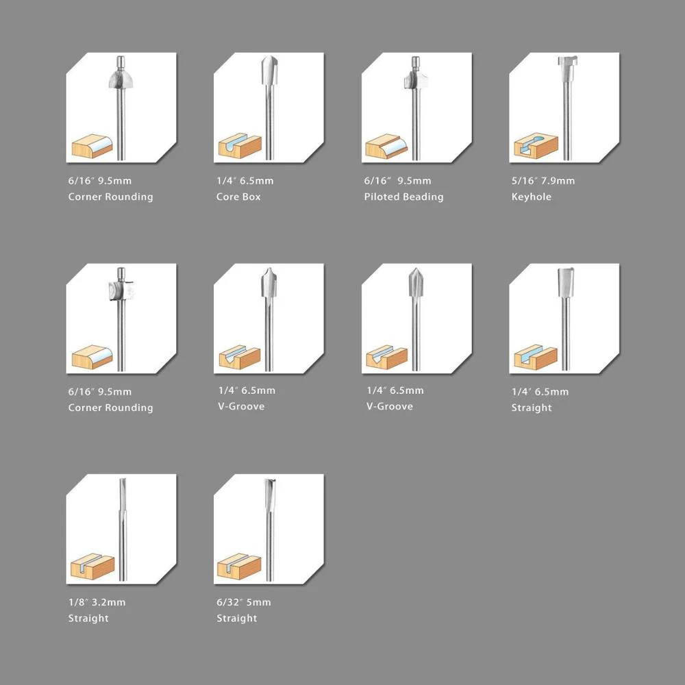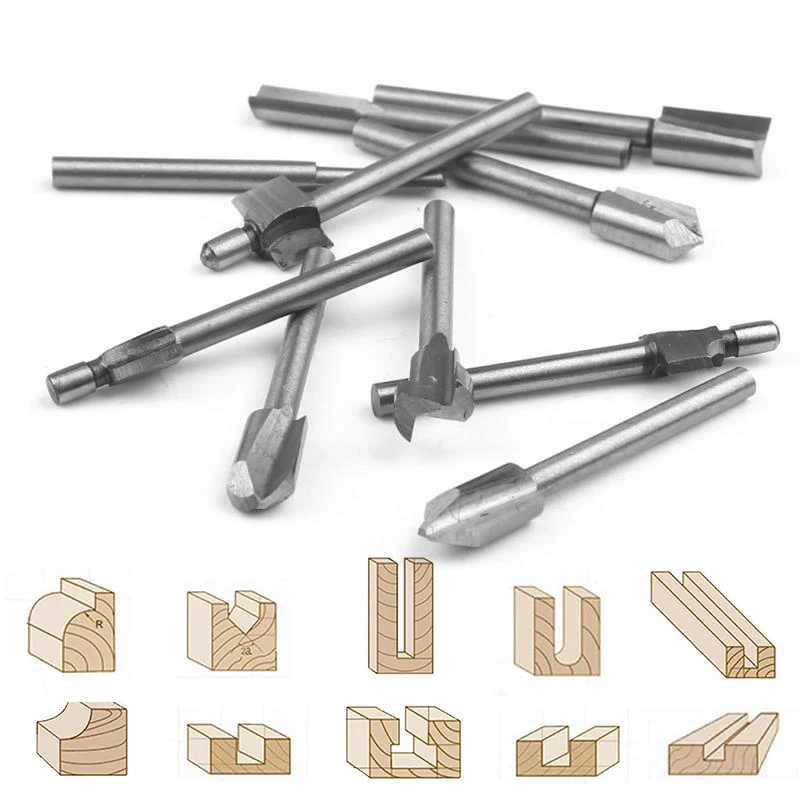 10Db 1/8 “Hss Router Bitek Fa Vágó Maró Illatok Dremel Forgó Szerszámkészlet 3Mm -Es Szárú Ács Szerszámokhoz Diy