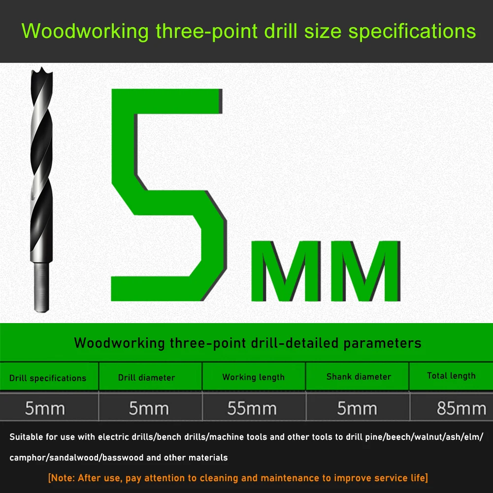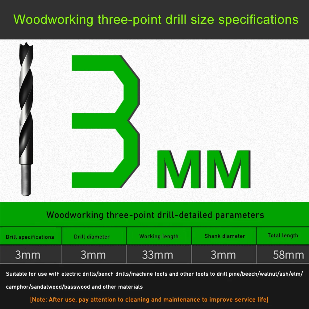 10Db 3 Mm 5 Magas Széna Acél Fa Famegmunkáló Szerszám Egyenes Szár Csavar Három Brad Point Drill Bit Wood Working Twist Fúró