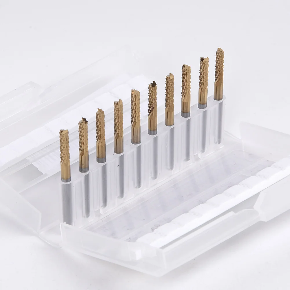 10Db 3,175 Mm -Es Karbid Maróvágó Szett Vége Malom 1/8 Hüvelykes Szár Titán Bevonattal Ellátott Cnc Fúró Bit Pcb Metszet Famegmunkáló Szerszám