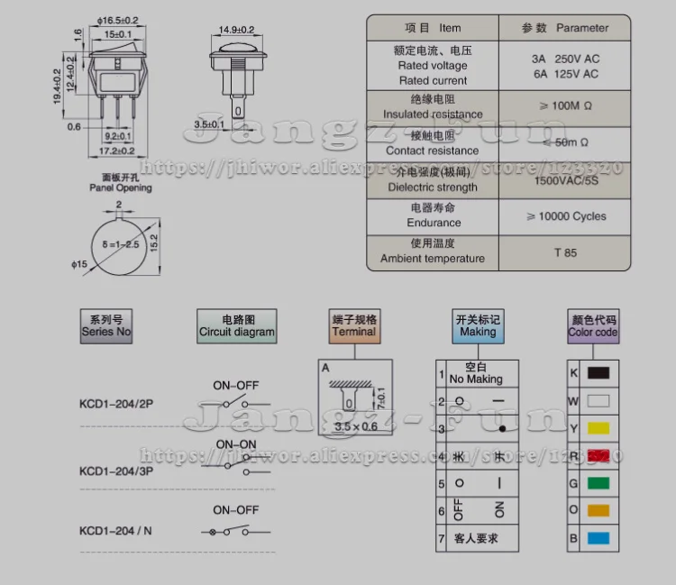 10Db Kcd1 15 Mm Kerek Rocker Kapcsoló 2 Csapok Pozíció Befelé Spst White Elektromos Elektromosítási Kapcsolók Ac 3A 250V 6A 125V
