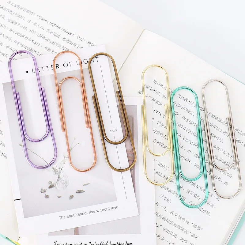 10Db Nagy Fém Színű Papírklip 100 Mm Lágy Műanyag Csomagolású Könyvjelző Klip Levélpapírkészletek
