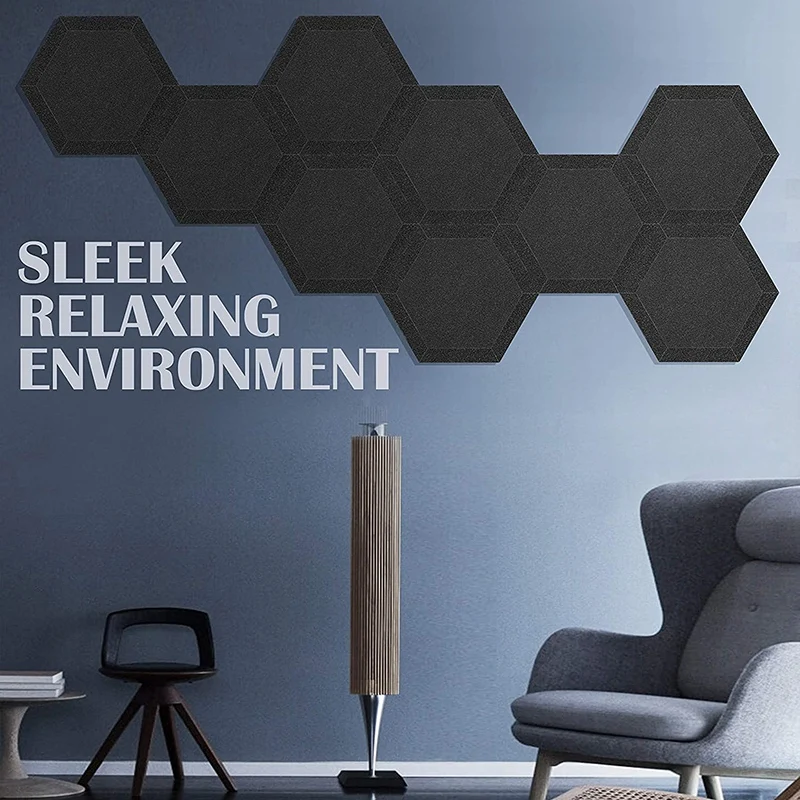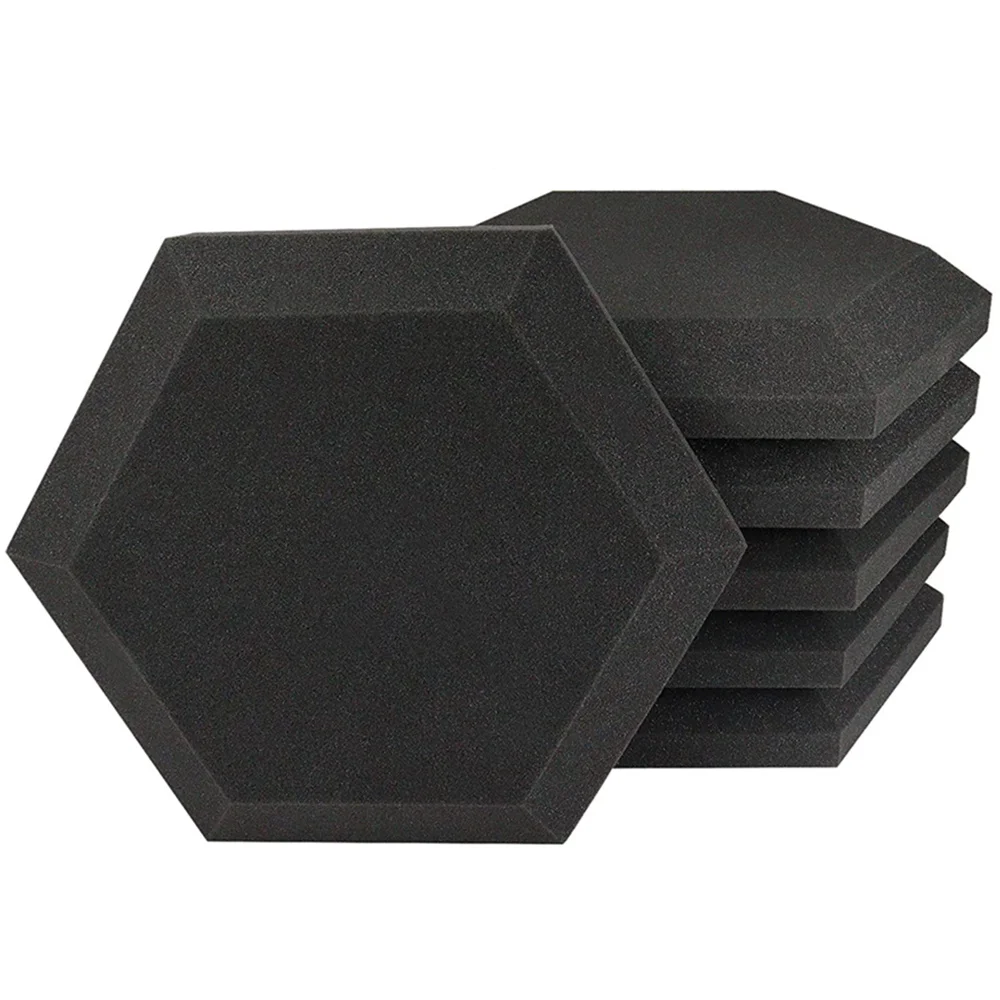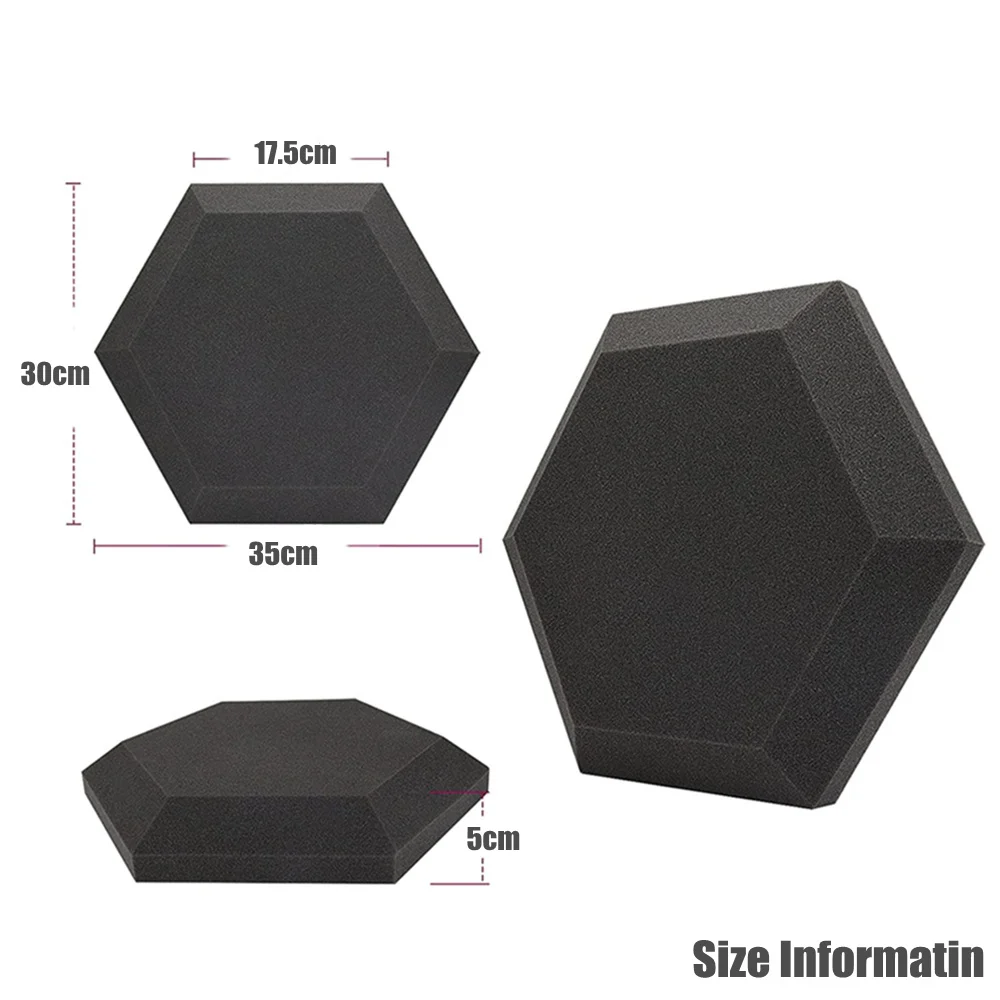 12/24Pcs Hatszögletű Akusztikus Habpanelek Hangszigetelő Padding Stúdió Habblokk Falfali Hangja Elnyelő Ragasztó Szalagokkal