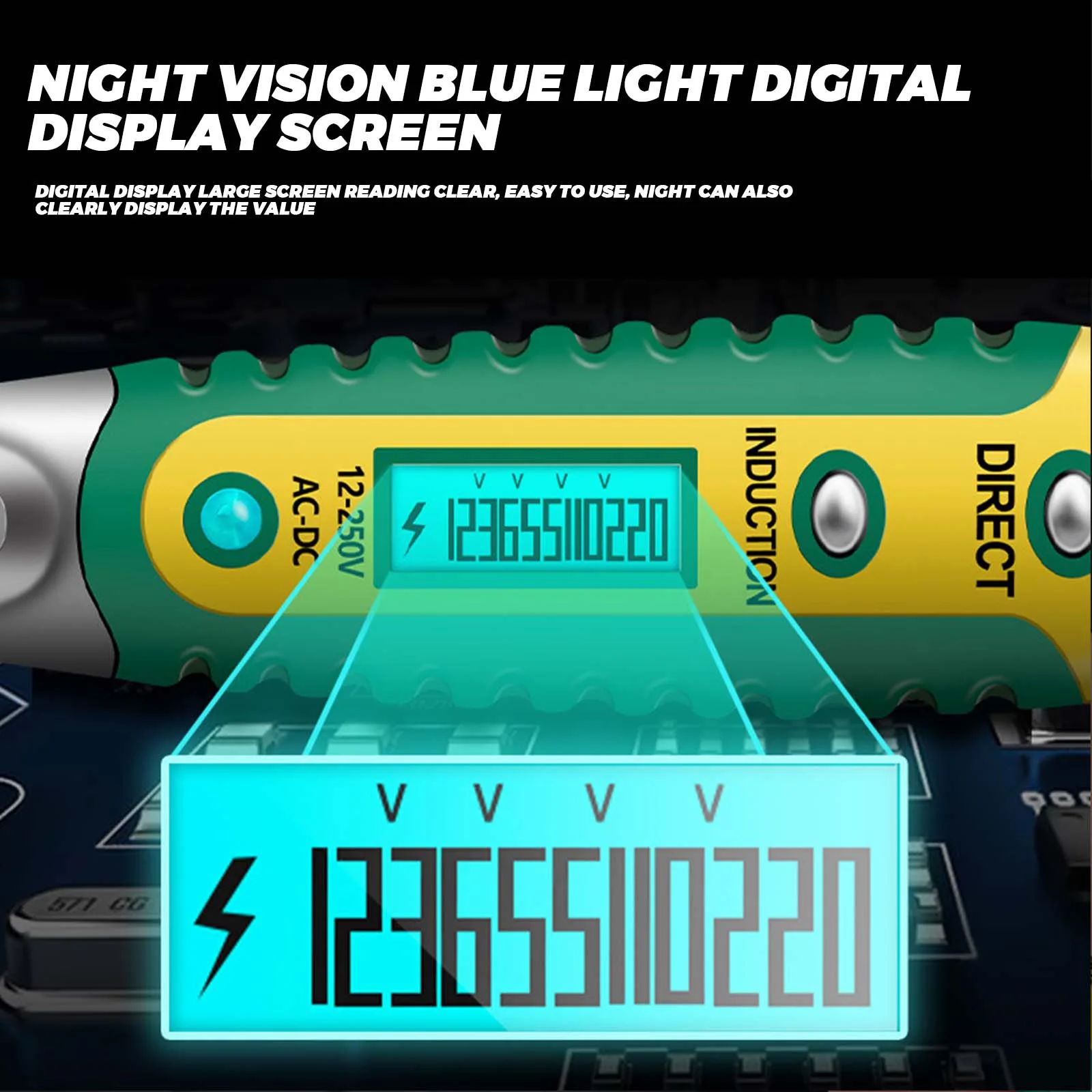 12-250 V Ac Dc Villamosenergia-Mérő Toll Tesztelő Elektromos Csavarhúzó Lcd Kijelző Feszültségérzékelő Teszt Villanyszerelő Szerszámok
