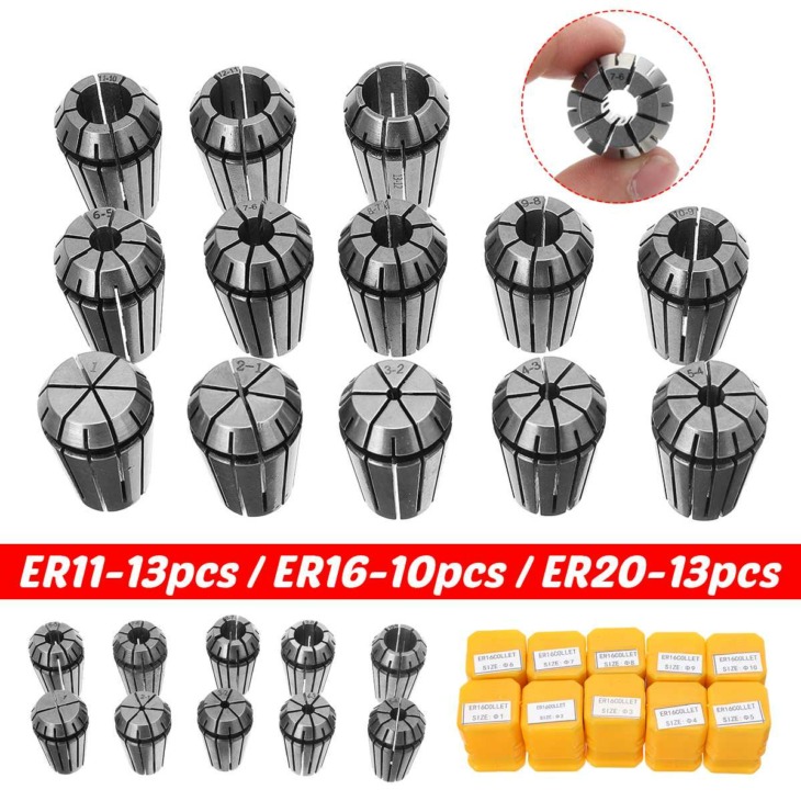 13Pcs / Set Standard Er20 Er11 Er16 Spring Collet Meghatározott Szorítóanya Cnc Marógép Gravírozás Eszterga Szerszám Gravírozás Machine