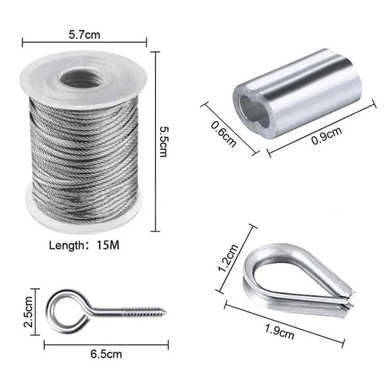 15 Méter Rozsdamentes Acél Rugalmas Huzalkötél Puha Kábel 2Mm -Es Függő Kampókészlet A Lógó Növények Sátorfüggöny -Szárítókötél