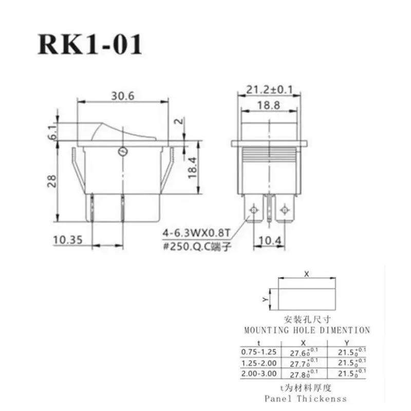 1Pc Uniteelec-Nek Nevezett Minőségű Piros/Zöld Fény Dpst Be-Off Vízálló Rocker Kapcsoló Rk1-01 4 Pins 16A/250V Ul Tuv Lista