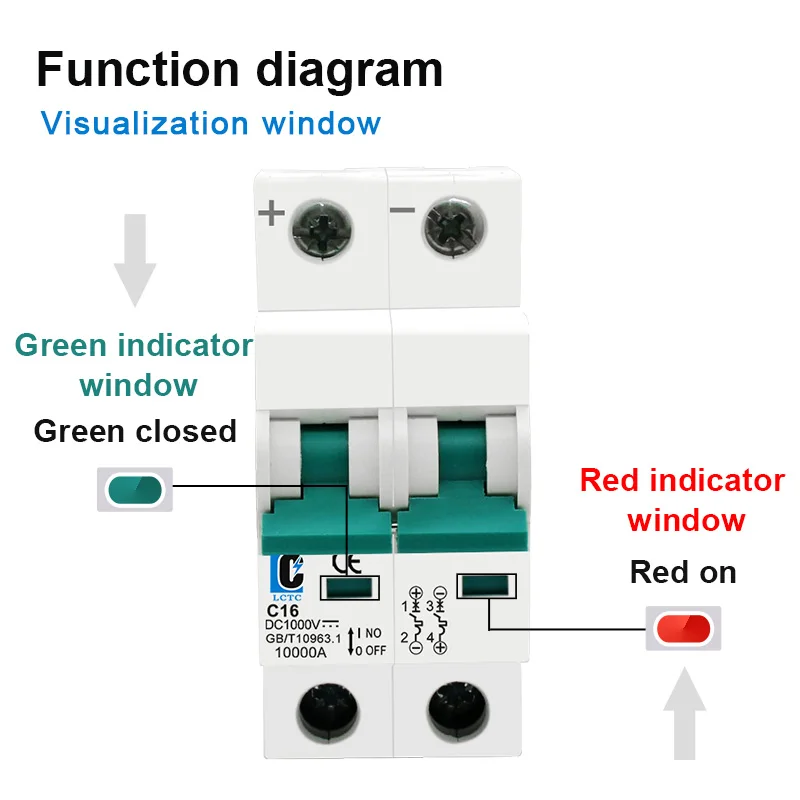 2 Pólus Mcb Cirvicter Dc 1000V 6A 10A 16A 20A 25A 32A 40A 50A 63A Fotovoltaikus Pv Breakers Rendszerhez