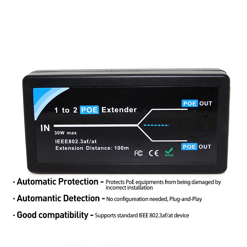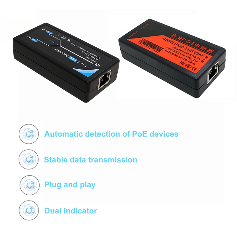 2 Port Poe Extender 10 / 100Mbps Ieee 802.3Af Szabványos Bemeneti Kimenet Az Ip -Kamera Számára.