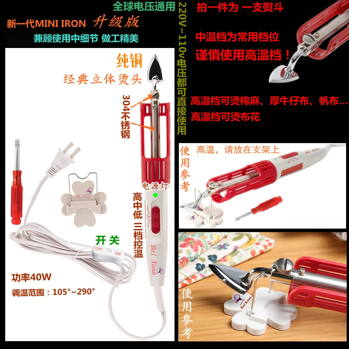 220 V Toll Típusú Mini Babaruha Vas Részlet Vasalórész Diy Kis Elektromos Varró Szerszámok