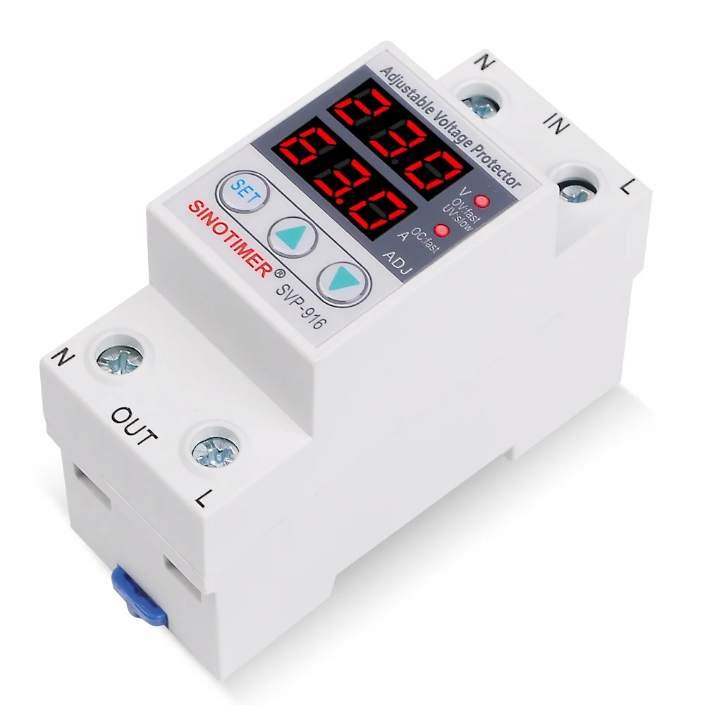 220 V Vagy 110V 63A Önmegtakarítás A Feszültségvédő Relé Felett És Alatt Dupla Led-Es Feszültség-Monitor Volt-Mérő Din Sínvel