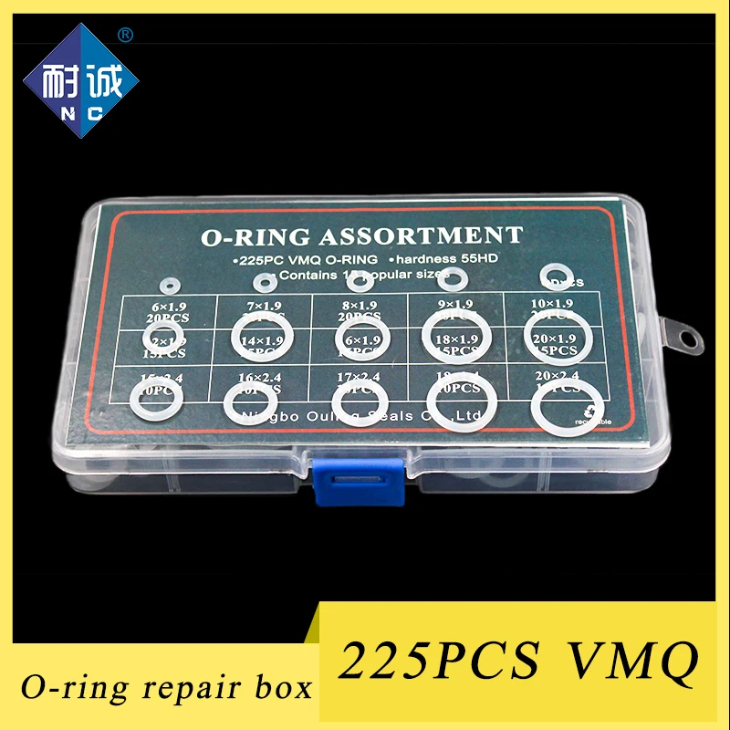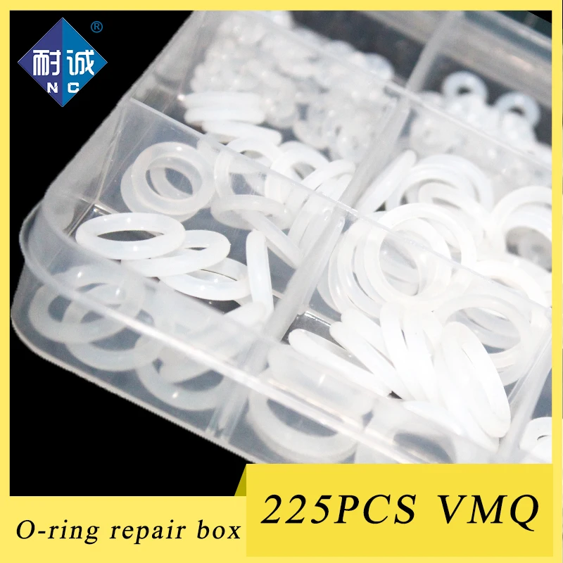 225Pcs O Gyűrűs Szilikon Gumi O-Gyűrű Vmq Tömítés Gyűrű Szilíciummosó Oring Set Választékkészlet Készlet