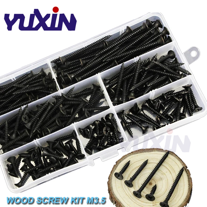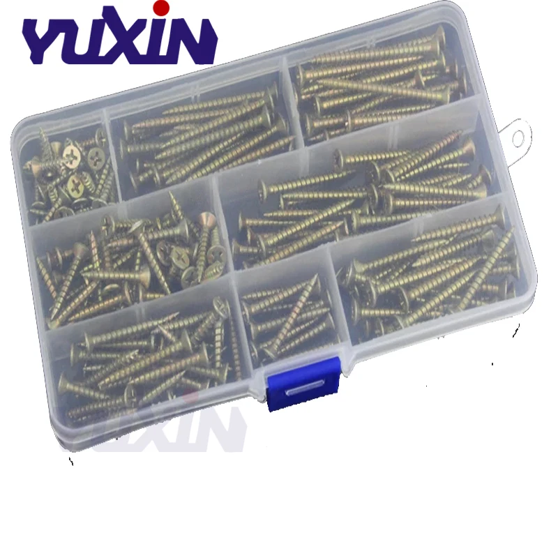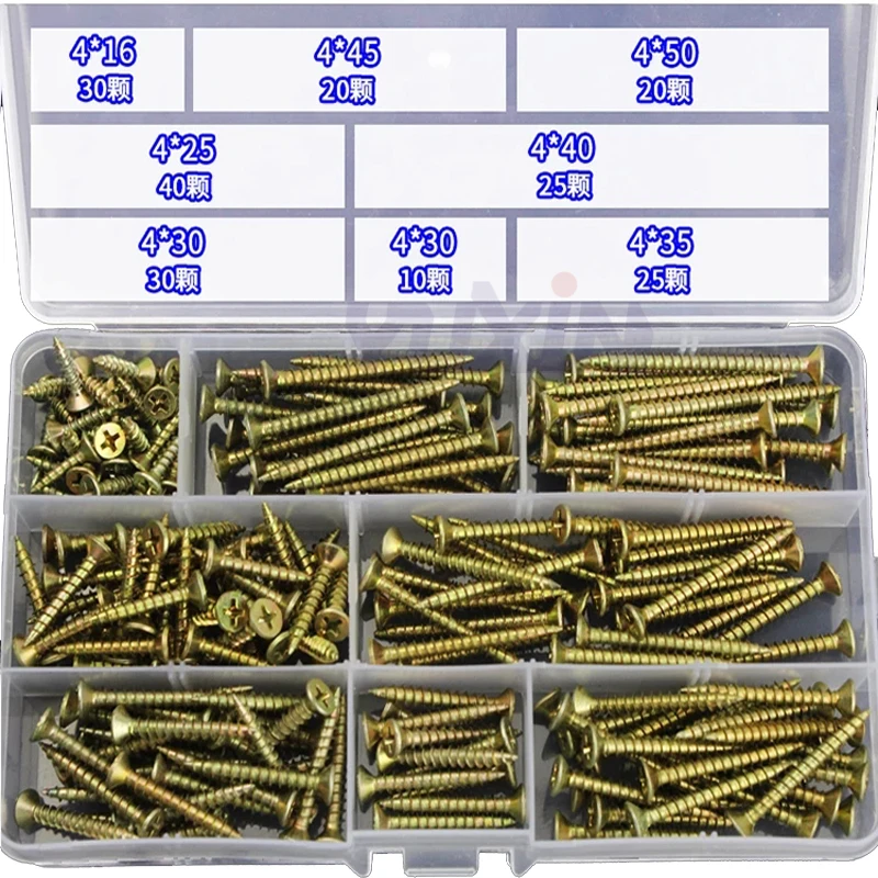 230Pcs Fa Csavarkészlet Keresztes Süllyesztett Szálas Csavar Cinc -Vel Bevont Önálló Csavaros