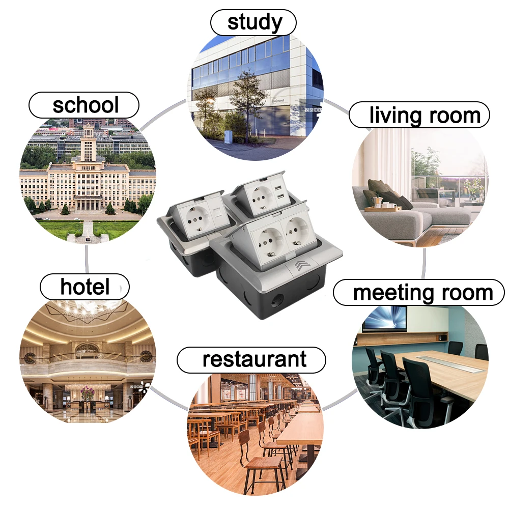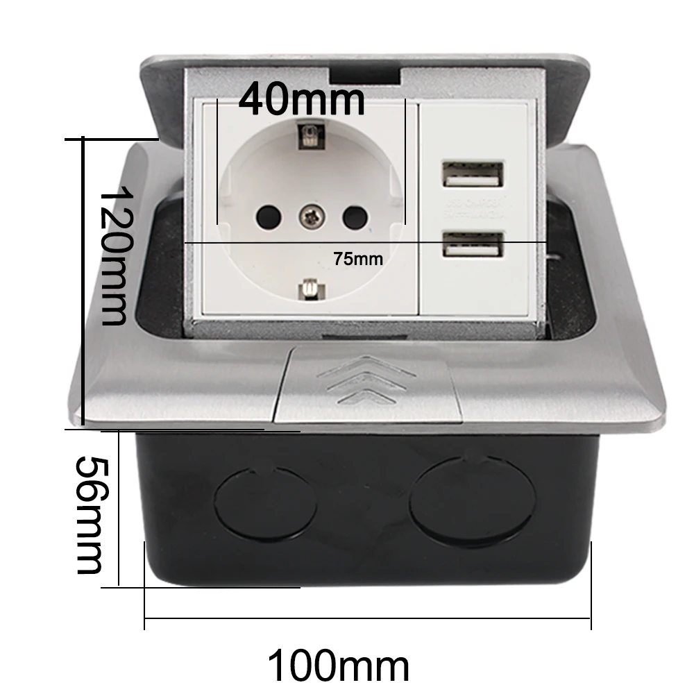 250 V 16A Universal Europe Standard Socket Usb Rj45 Internet Outlet Alumínium Aluminum Alloy Box 2 Wage Power Pop-Up Padlout