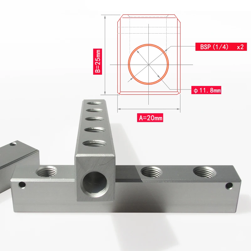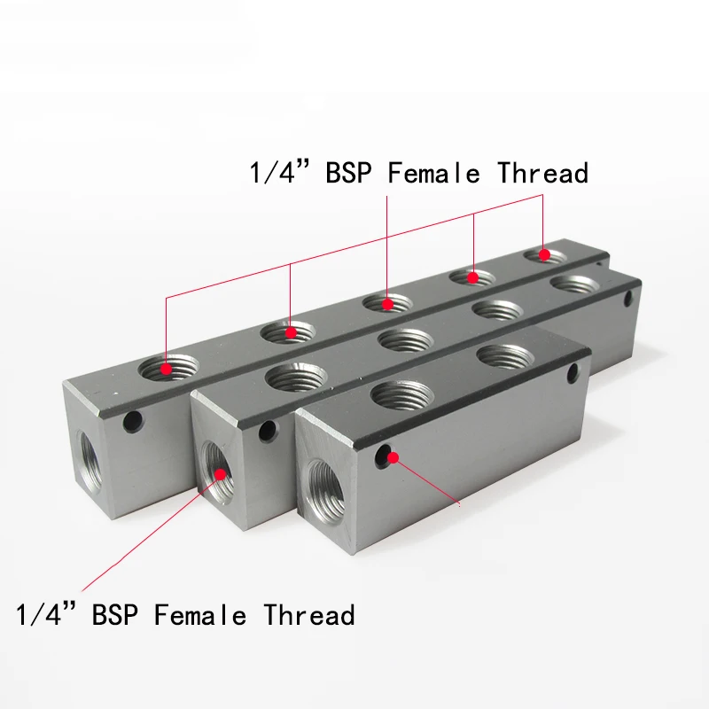25X20 Mm 1/4 “Bsp Anya Pneumatikus Felszerelés Gyors Csatlakozógáz -Elosztó Elosztó Alumínium Blokk A Légkompresszorhoz