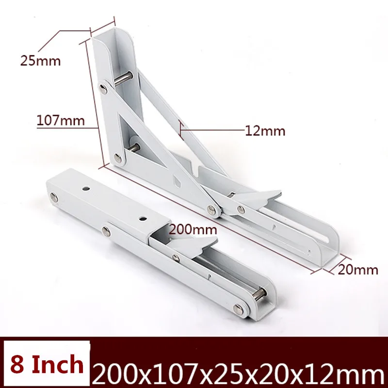 2Db, 8-20 Hüvelykes Fehér Fém Háromszög Összecsukható Szög Zárójel Állítható Falra Szerelt Polc Tartókonzol Barkácsolás Otthoni Asztali Pad