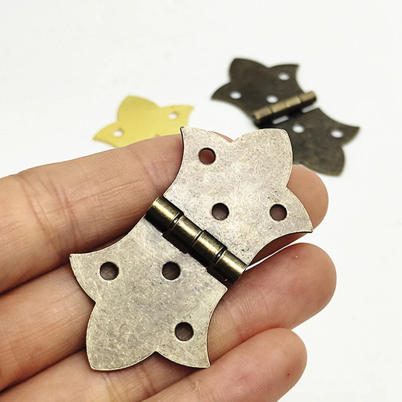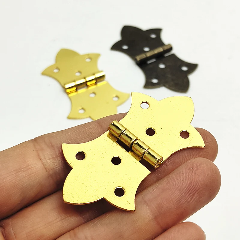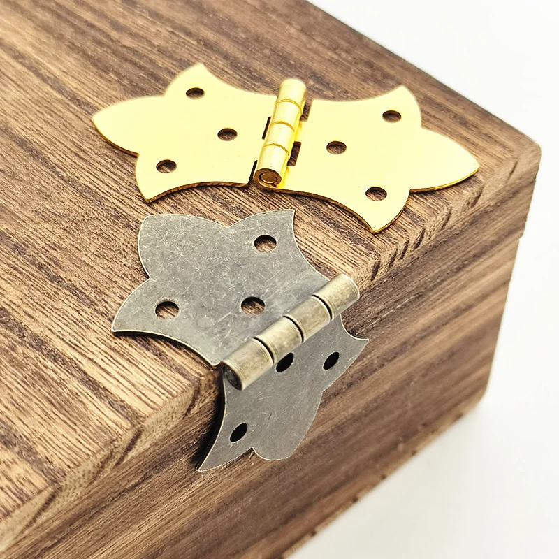 2Db Antik Bronz/Arany Fa Doboz Csuklópántság Diy Bútorok Hardver 6 Lyuk Vas Csuklószekrény Fiókja Pillangó Csuklópánt Csavarral