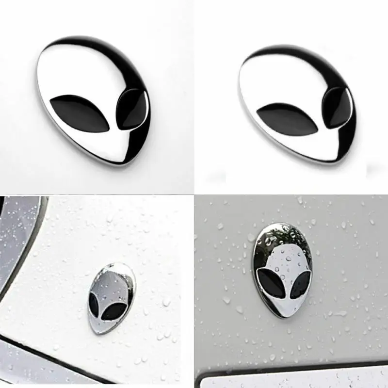 2Pc 3D -S Autó Matricák Fém Alienware Alien Head Auto Logo Matrica Jelvény Embléma Motorkerékpár Test Stílusú Fejfedél -Matrica