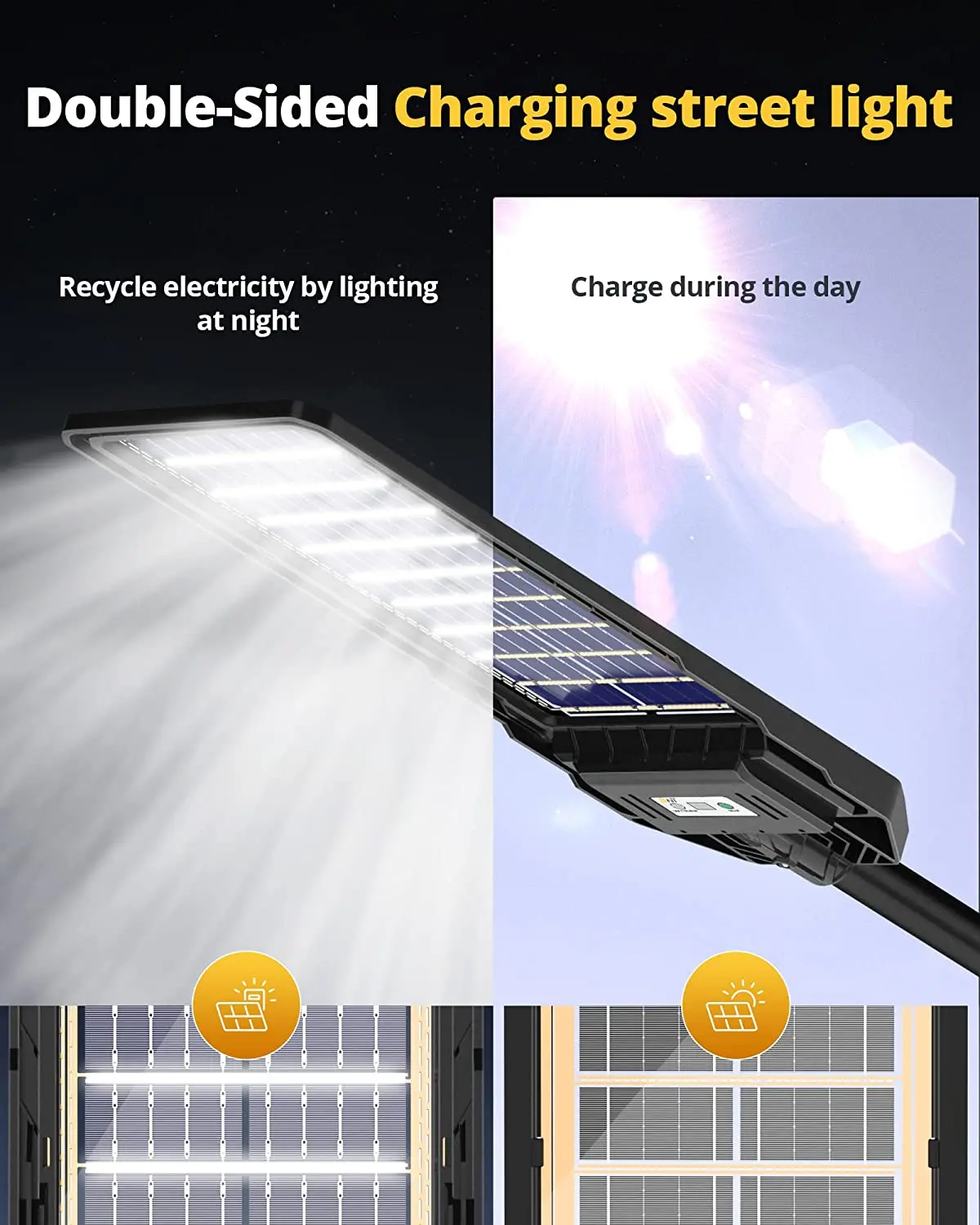2Pc 80000 Lm Kétoldalas Töltésű Napenergia Utcai Lámpa Kültéri 400 Led-Ek Napenergia-Érzékelő És Távirányító Led Árvízlámpa