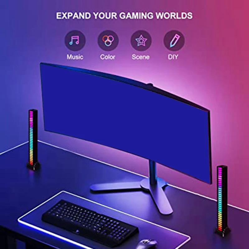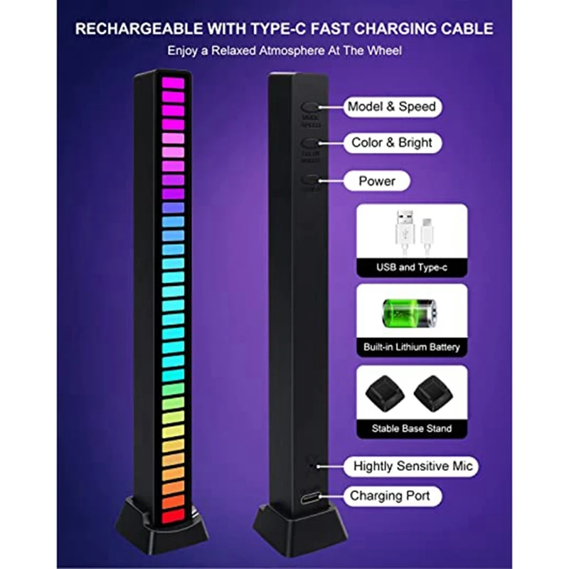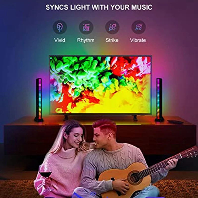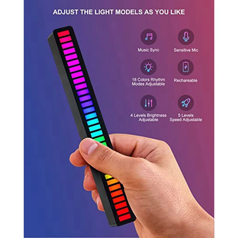 2Pcs Rgb Ritmuscsík Fény, Újratölthető Játék Zenei Led Csík Hangulatválasztás Színes Környezeti Fény