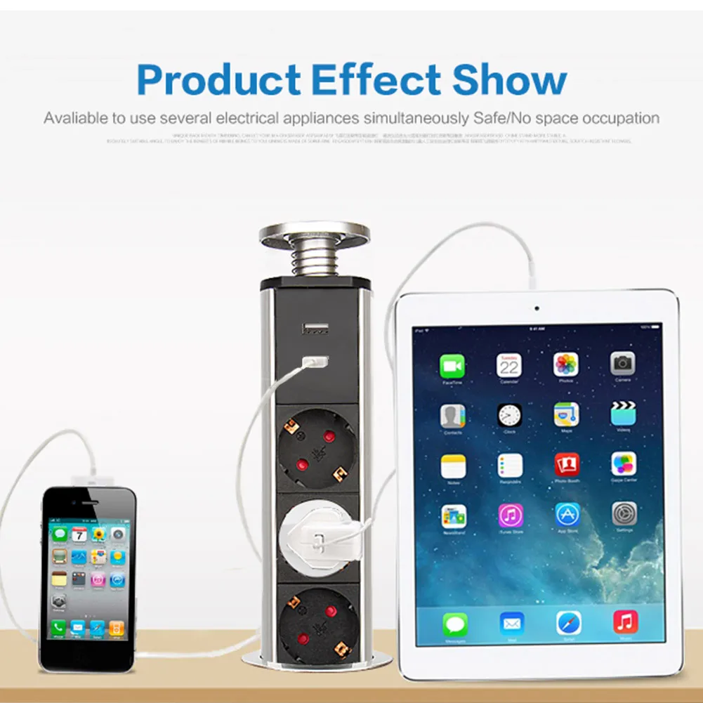 3/4 Tápegység Elektromos Aljzat Szakítószilárdság -Kimeneti Dugó Munkalapasztal -Asztali Konyha Otthon Húzza Fel Az Aljzatot 2Db Usb Conne -Val