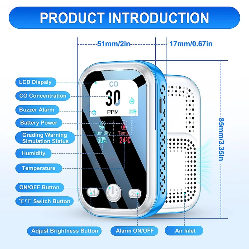- Feature2: 3 IN 1 CO Temperature Humidity Meter