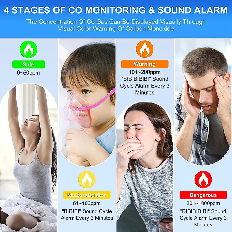 3 Az 1 -Ben Szén -Monoxid -Detektor Lcd Indikátor Biztonságos Érzékelő Levegőminőségi Monitor Co Hőmérsékleti Páratartalommérő Beltéri És Autóhoz