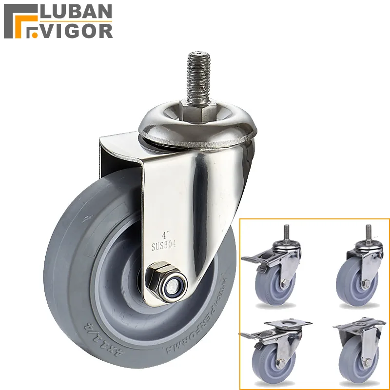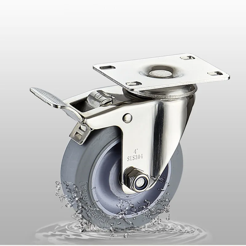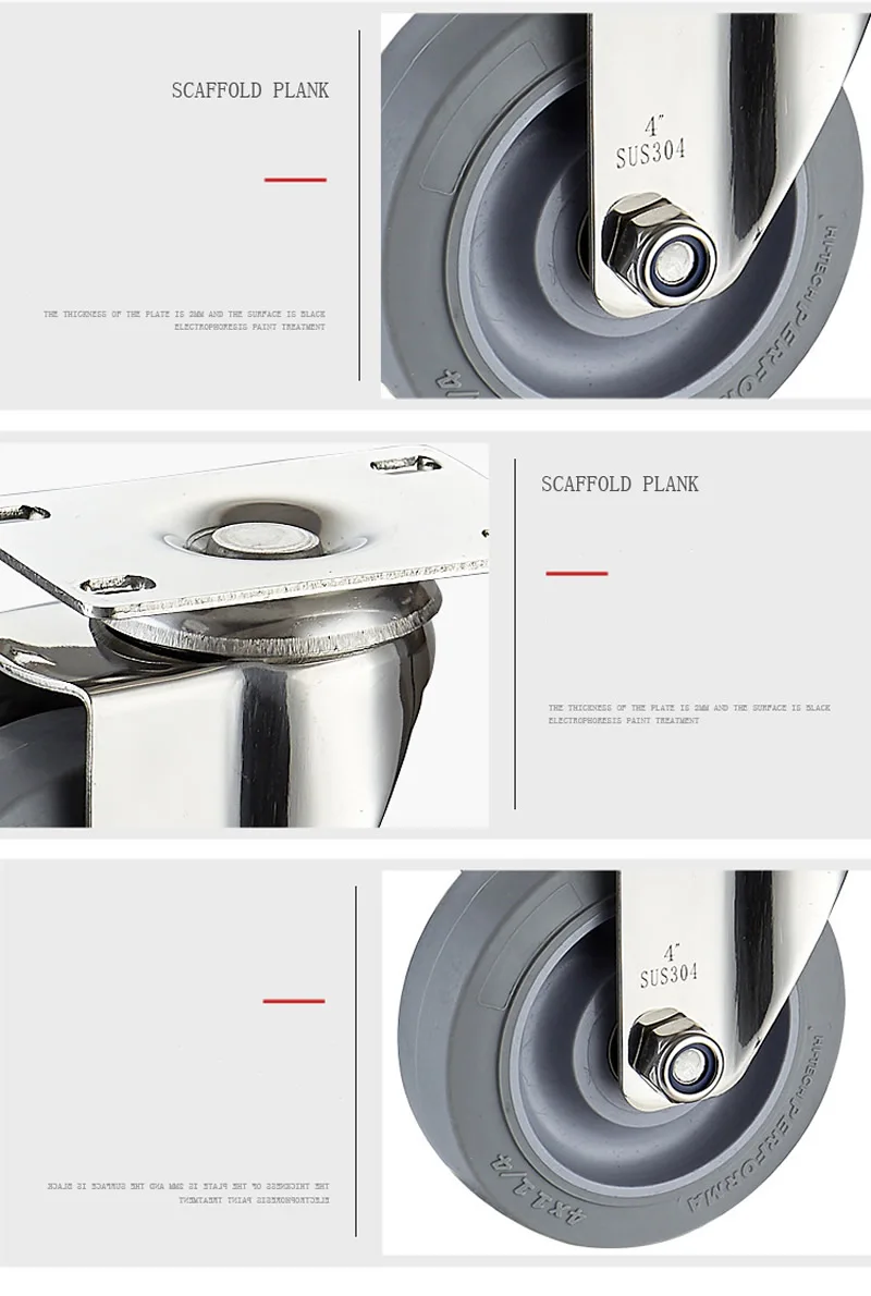 304 Rozsdamentes Acél Görgők Kerekek 3 Hüvelykes 4 Poliuretán Pu Kerék Némítás Nincs Rozsda Nedves Környezeti Számára