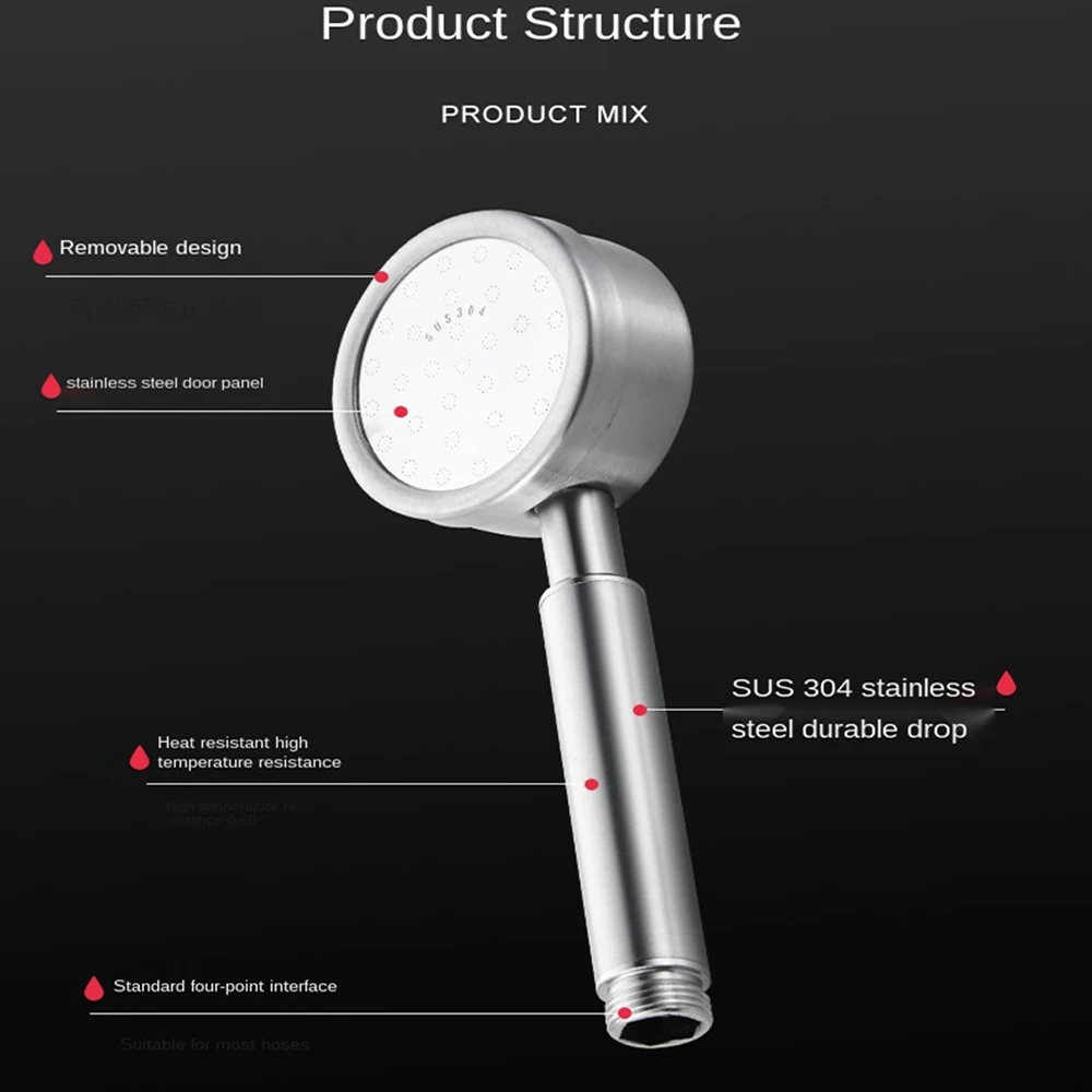 - Shower head: 304 stainless steel shower head