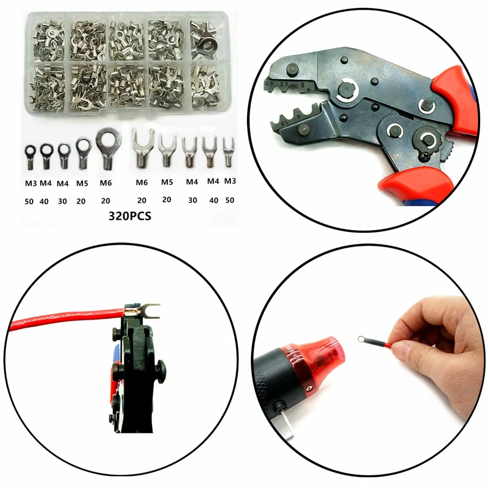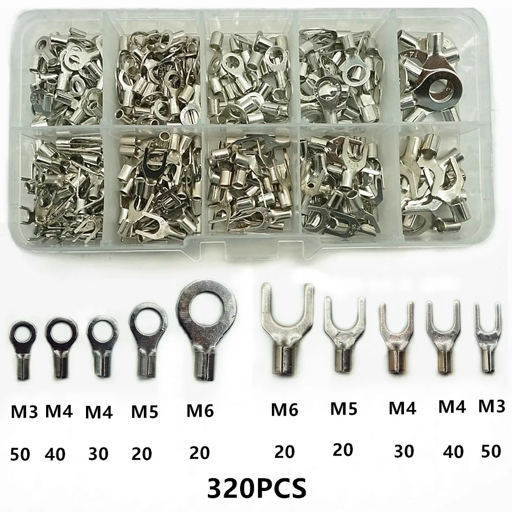320Db/Dobozos Csatlakozók Nem Szigetelt Gyűrűvilla U-Típusú Sárgaréz Terminálok Választékkészlet Kábelhuzal-Csatlakozó Krimpolós Ásó