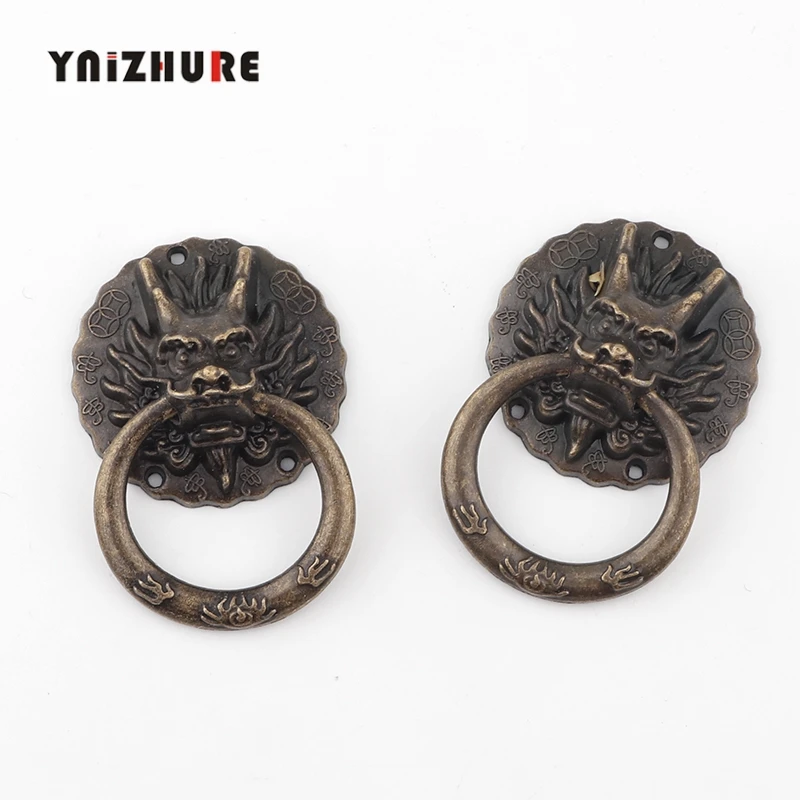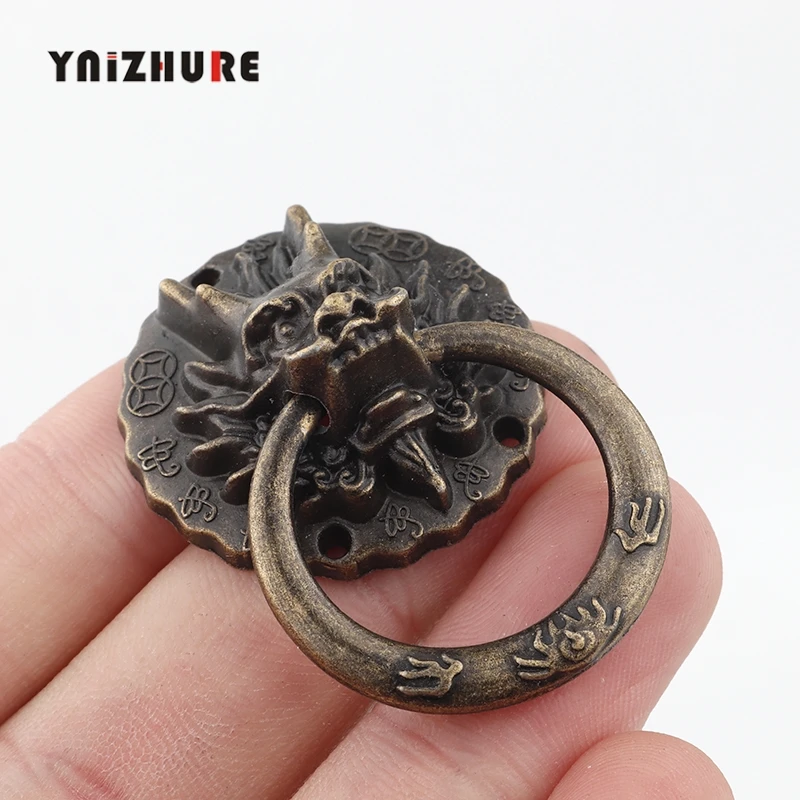 32*47 Mm 20Db Kínai Vintage Sárkány Fej Bútor Ajtó Húzó Fogantyú Ötvözet Szekrény Fiókok Kis Gyűrűfogantyú