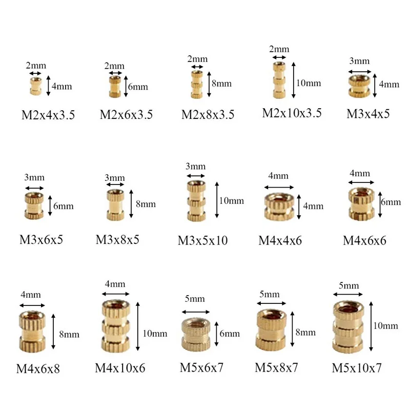 330Dbs Knurled Sárgaréz Menetes Beszúrás Anyák Készlet M2 M3 M4 M5 Anya Fröccsöntési Választékkészlet