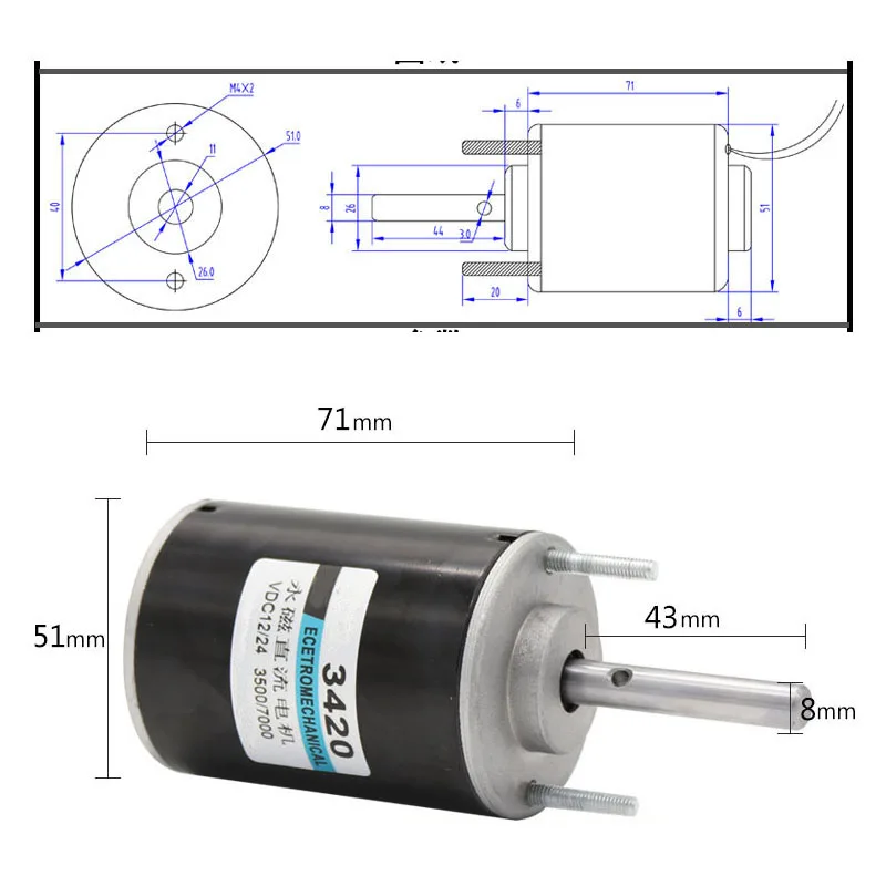 3420 30W Cw/Ccw Állandó Mágnes Dc Nagysebességű Motor