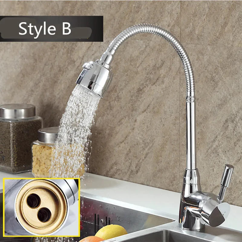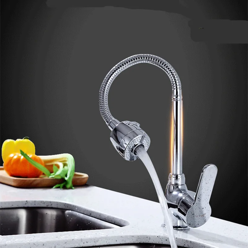 360 Fokos, Egyfenőkar -Fogantyúk Egyfuratú Konyhai Csaptelepkeverők Mosogatócsap Modern És Hidegvízi Sárgaréz Króm Mosogató Két Üzemmód