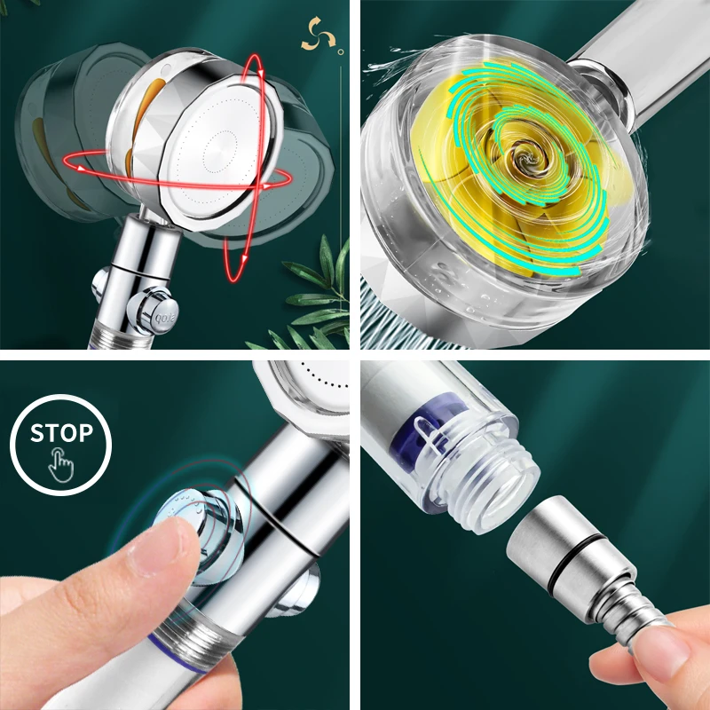 360 Fokos Forgó Zuhany Fejvíz -Megtakarító Áramlás Kis Ventilátor Mosható Nagynyomású Permetező Fúvóka Fürdőszobai Kiegészítők