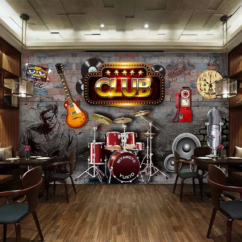 3D Háttérkép Retro Nosztalgikus Téglafali Zenei Tematikus Bár Fotó Falfestés Nappali Hálószoba Háttér Fali Dekoráció